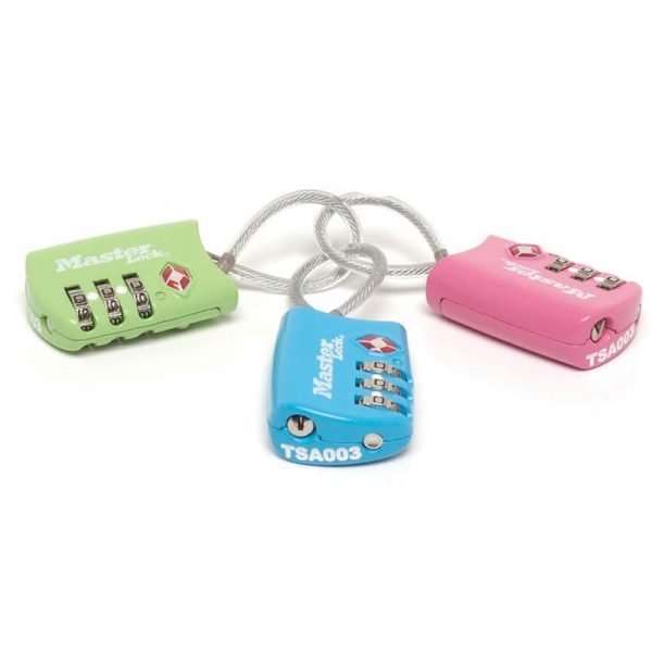 Λουκέτο αποσκευών συνδυασμού 3 ψηφίων MASTERLOCK που επιτρέπει τον έλεγχο των αποσκευών με το ειδικό κλειδί που διαθέτουν οι Αμερικανικές αρχές ασφαλείας. Διαθέσιμο σε διάφορα χρώματα.